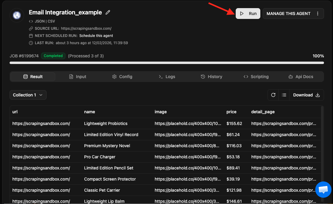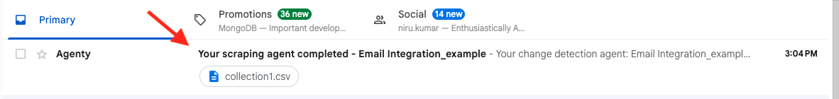 Agenty’s email integration allows you to send email notification when a web scraping job has been completed or errored. You can also send the agent’s output as an attachment to given email addresses in CSV(comma separated values) format to automate the scraped data delivered on your email.