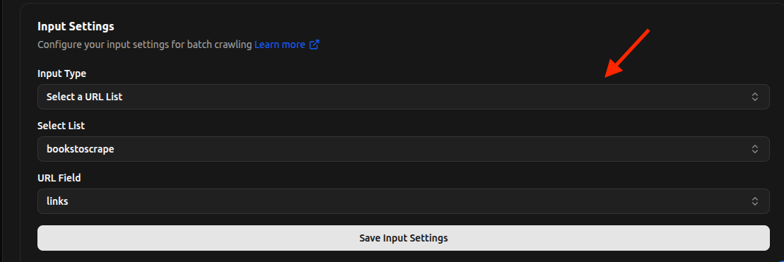 Now we want to take more URLs field so, we are using input type Select a URL List.