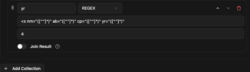 If you see the screenshot given below, the expression I used has 4 matching result in each XML s tag, which are given default names as 1,2,3,4 in the group. So, we will be using this expression with group number to extract our desired result in field we need it.