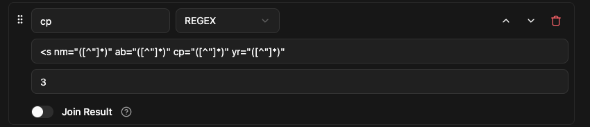 Add one more field, and name it ab, Type as ‘REGEX’ and the Regex Pattern with ‘Group Index’ given in below screenshot.
